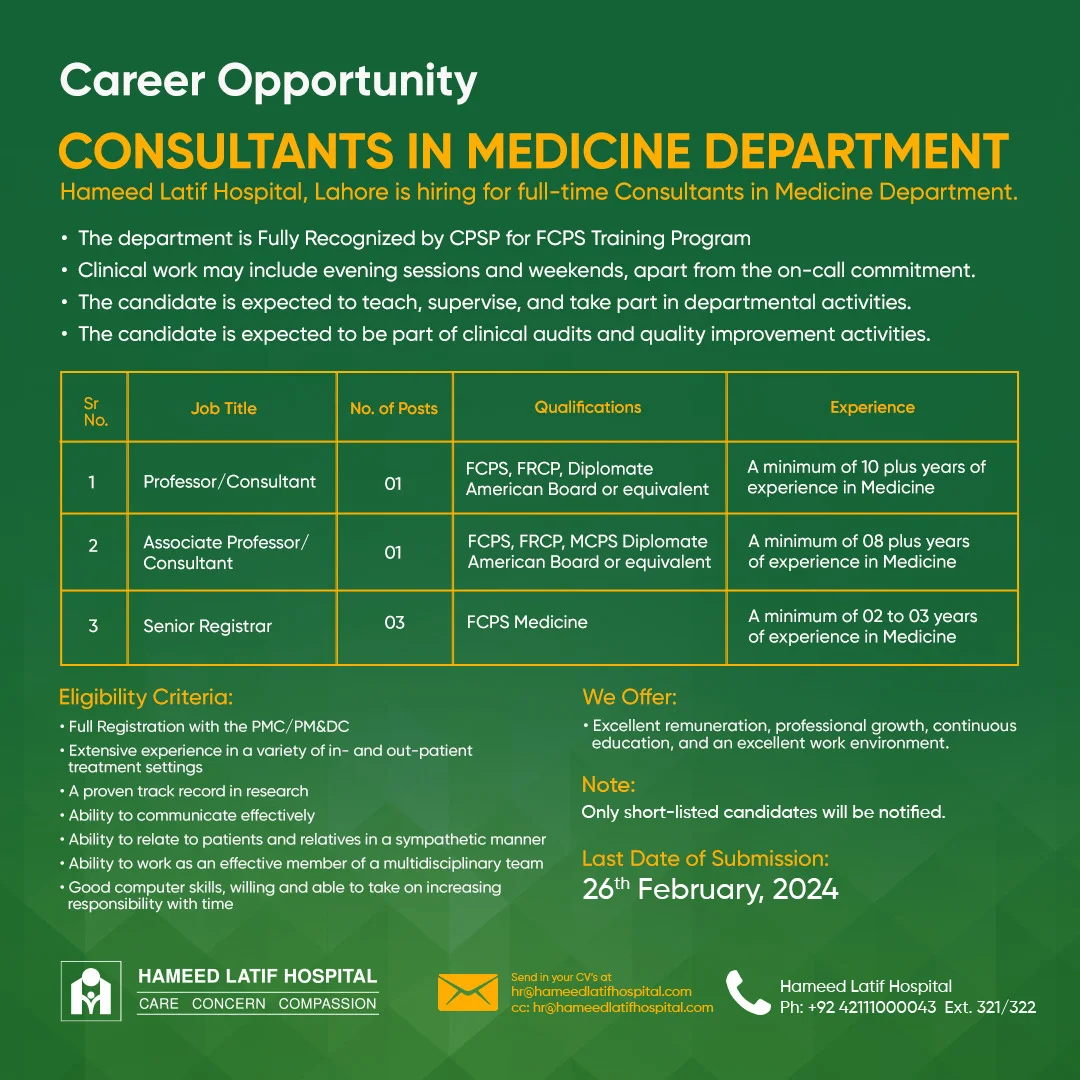 Consultants in Medicine Department | 16-02-2024 | 26-02-2024 | ||