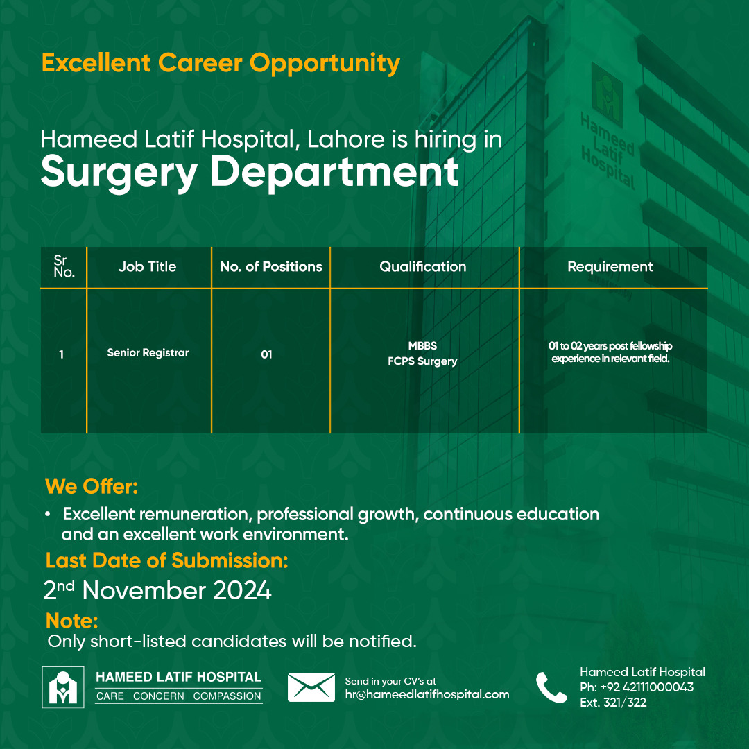 Senior Registrar | 24-10-2024 | 02-11-2024 | ||
