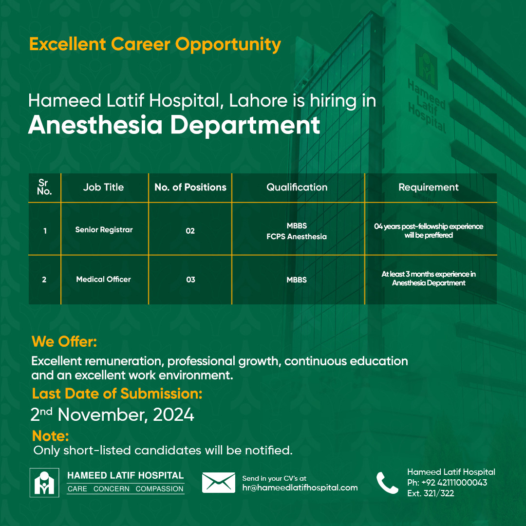 Senior Registrar & Medical Officer | 23-10-2024 | 02-11-2024 | ||