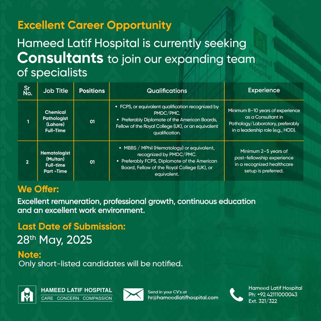 Consultant Chemical Pathologist & Hematologist | 26-05-2025 | 28-05-2025 | ||